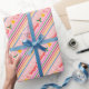 Festas Felizes Modernas Festas Felizes de Natal Envolvendo Papel de Presente Envolve um simples padrão moderno com o texto "Feriados Felizes" em um roteiro de caligrafia moderno acentuado com holly, sinos, canas doces e flocos de neve em fundo rosa. Perfeito para presentes de presente para família e amigos no Natal e feriados. Criado pelo Evco Studio www.zazzle.com/store/evcostudio