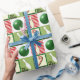 Papel de embrulho de presente com tema de boliche para o Natal. Para personalizar, edite o texto para adicionar o nome do seu boliche favorito.