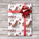 O padrão repetido neste papel de embrulho de Natal é uma imagem de um lindo cão Siberiano Husky vestindo um chapéu de Papai Noel vermelho e branco, com um travesseiro de xadrez de búfalo preto e vermelho atrás dele, e um pacote de presentes coordenado com uma fita de ouro ao lado dele. Há também um arco de xadrez de búfalos e o texto correspondente que diz "JOY". O texto de xadrez de búfalos vermelho e preto estilizado diz MERRY CHRISTMAS", e sua própria assinatura está em dois campos para você personalizar.