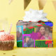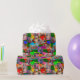 Este papel de embrulho tem fotos de Eleanor por toda parte na forma de presentes sob a árvore de Natal.