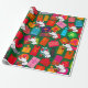 Papel embrulhando com um elefante branco vestindo um chapéu de Papai Noel e um padrão de presentes embrulhado com um fundo verde. Isto combina com os convites de festas de Natal. É fácil personalizar e personalizar.
