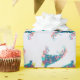 Uma saudação de Natal Feliz e um gato giro brincando numa árvore de Natal.