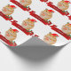 Este adorável papel personalizado de embrulho de Natal apresenta um Ouro de Hamster fofo segurando um presente e vestindo um chapéu de Papai Noel contra um fundo branco com Holly. O nome pode ser alterado. Perfeito para crianças e entusiastas de Hamster de todas as idades.