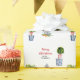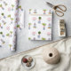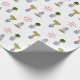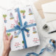 Papel de embrulho de Feliz Natal personalizado, impresso à mão, com cerâmica azul e branca e topiário.