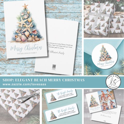 Elegant Coastal Shell Beach Merry Christmas TreeCriado por Jo P.