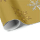 Papel de embrulho de Natal prateado e floco de neve dourado. A quebra de presentes de qualidade em uma rolo tem opções opcionais de comprimento. O papel dourado escuro tem um grande padrão de flocos de neve e cristais em cinzas prateadas e cores douradas mais escuras.