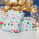 Folha de presente de Natal e decoração de festas de Natal com Papais noeis de desenho animado rodeados de flocos de neve, doces de Natal e biscoitos.