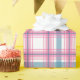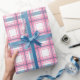 Papel de embrulho de Natal cor-de-rosa e azul-tartã. Bonito bolsa de presente de xadrez.