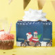 Um Papai Noel andando de bicicleta entregando a árvore de Natal e o Bulldog Francês como presente é uma ideia perfeita de presente de Natal para alguém que ama essa raça de cachorro.