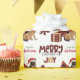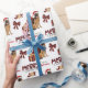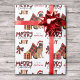 O padrão repetido neste belo papel de embrulho de Natal é uma imagem de um Cachorro German shepherd vestindo um chapéu de Papai Noel vermelho e branco, com um travesseiro de xadrez de búfalo preto e vermelho atrás dele, e um pacote de presente de coordenação com uma fita de ouro ao lado dele. Há também um arco de xadrez de búfalos e o texto correspondente que diz "JOY". O texto de xadrez de búfalos vermelho e preto estilizado diz MERRY CHRISTMAS", e sua própria assinatura está em dois campos para você personalizar.