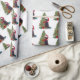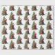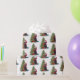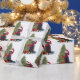 Um labrador de chocolate com árvore de Natal e presentes em fundo branco.