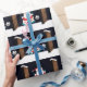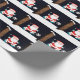 Embalagem de presente de Natal de futebol com a criativa cena natalícia de Papais noeis no telhado.