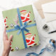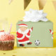 Brincadeira de presente de futebol feminino com um jogador de futebol da Sra. Claus girando uma bola.