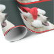 Labrador amarelo em um chapéu de Papai Noel ama papel de embrulho de férias