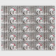O cão preto e branco do Malamute do Alasca dons o papai noel chapéu e as cabeças para a neve perseguem o papel de envolvimento do feriado do Natal dos amantes
