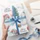 Linda safra com a cor d'água do Papai Noel, do Homem de Neve e da árvore de Natal embrulhando papel com feliz texto de Natal.