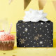 Este papel de embrulho dará um olhar elegante a todos seus pacotes. O fundo preto é polvilhado com o ouro e os flocos de neve brancos com um efeito glittery. (Não há nenhum brilho no papel.) Artigos de coordenação disponíveis.