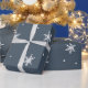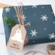Belo floco de neve embrulhando papel com fundo azul. Imprima a sua família e amigos com este papel de embrulho!