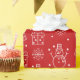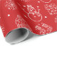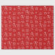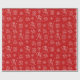 Este divertido papel de embrulho de Natal apresenta uma novidade festiva impressão de bonecos de neve, flocos de neve, presentes e chapéus de esqui contra um clássico fundo vermelho.