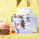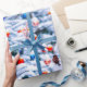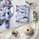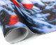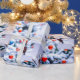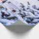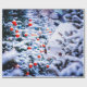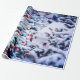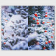 Sparrows e um pombo pelo alimentador de pássaros no inverno. Árvores de Natal cobertas de neve decoradas com bolas vermelhas e azuis ao redor. Morro de Natal. Papel de embrulho único e único. Você pode transferir este design para uma grande variedade de outros produtos, basta escolher um produto de uma linha abaixo. Divirta-se e seja feliz!