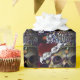 crânio em um chapéu do papai noel, ilustração no lápis da cor no papel preto