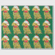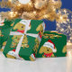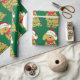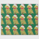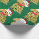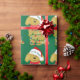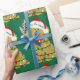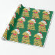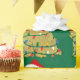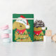 Bonita Cartoon Goldendoodle Puppy vestindo "Esta é a estação" chapéu de Papai Noel, embrulhado em luzes de natal.