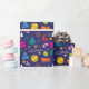 🎄 rolo de papel azul de embrulho 🎾 tênis de Natal. Ícones coloridos de Natal e bola de tênis amarela em fundo azul escuro.