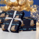 Um par de trouxas sobrepôs-se a um fundo de campo estrelado com texto lendo "Joyeux Noё l" em azul e branco brilhantes. Aparece também a leitura de texto adicional, "Os mukluks foram pendurados com cuidado pelo fogão de madeira". Um norte de longe sobre o famoso poema "Uma Visita da Rua. Nicholas." O poema, também conhecido como "Era a Noite Antes do Natal", foi publicado anonimamente em 1823 e posteriormente atribuído a Clement Clarke Moore, que reconheceu a autoria.