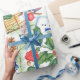 Papel de embrulho de Natal e Feriado para todas as suas necessidades de embrulho. O design inclui boneco de neve, trenós, pínus, holly e estrelas de madeira.
