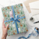 Este papel de embrulho bonito apresenta animais de inverno, chapéus e cachecóis vestidos - você encontrará ursos polares, pinguins, raposas, esquilos e coelhos. Flocos de neve, doces, árvores de Natal e biscoitos de gengibre acrescentam um toque divertido e caprichoso. A cor de fundo é verde-menta, mas pode ser personalizada para qualquer cor que você quiser. Perfeito para oferecer este feriado!