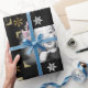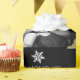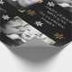 Adicione um toque pessoal ao seu presente. Flocos de neve Dourados e brancos decoram este invólucro de presentes. O nome da família e a foto adicionam um toque pessoal e especial aos presentes de férias. Feliz Férias!