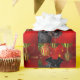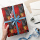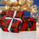 O Schnauzer preto em um fundo vermelho do Natal com ornamento persegue o papel de envolvimento feito sob encomenda do feriado do Natal dos amantes