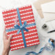 Um presente moderno de listras vermelhas e brancas para os feriados.