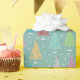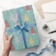 Este papel teal de embrulho de Natal com árvores de Natal retrógradas multicoloridas e starburst é um belo presente para iluminar seus presentes de Natal sob sua árvore de Natal nesta temporada. Você pode fazer o padrão nesse papel de empacotamento maior ou menor.