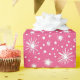 Este padrão ousado e vibrante apresenta um arranjo disperso de estrelas brancas, pontos e estrelas pequenas em um fundo rosa claro. A design tem uma sensação divertida e retrógrada com suas formas irregulares e filmes de estrelas divertidos