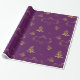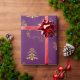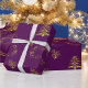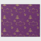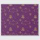 Um papel de embrulho de Natal muito decorativo, de púrpura e ouro, com elementos decorativos dourados de colly, árvores de Natal, estrelas de ouro e uma grande decoração de ouro para adicionar um toque muito elegante ao seu embrulho de presente para esta época de férias.