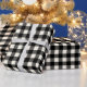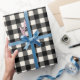 Esta design de papel de embrulho de Natal apresenta uma casa de fazenda moderna rústica, preta e esbranquiçada/xadrez de búfalo de marfim, em pequena escala.