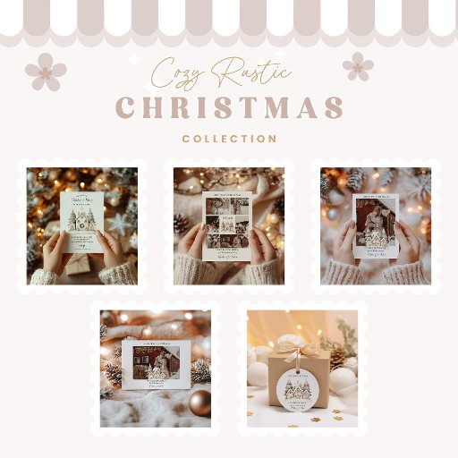 Celebrar a estação com esta design de Natal quente e rústica, com uma acolhedora casa de inverno, pinheiro coberto de neve e elementos de aquarela pintados manualmente em tons neutros e macios. A paleta de cores calmas e a charmosa floresta tornam-na perfeita para uma reunião de férias íntima em uma nova casa.