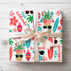 O papel de embrulho tropical de Natal apresenta um padrão de pranchas, palmeiras com luzes de cordas, ananases decorados, flores de hibisco, óculos de sol, ornamentos e saudações havaianas "Mele Kalikimaka" e "Aloha". Perfeito para os temas de praia, costeira, ilha e surfe. Trabalho de arte original do KL Stock.