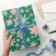 Este papel de envolvimento bonito do Natal caracteriza pinturas da aguarela de flores da poinsétia em cores tropicais: rosa, vermelho coral, verde da hortelã, e turquesa.