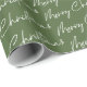 Um papel de embrulho de natal moderno, com um fundo verde com as estações saudações de "feliz natal" espalhado sobre ele.