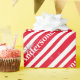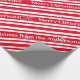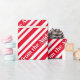 Design apresenta listras brancas e vermelhas festivas de cana-doce com uma torção! O design personalizável apresenta a mensagem de Natal exibida em texto branco contra as listras vermelhas. Todos saberão de quem é o presente embrulhado neste jornal!