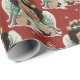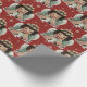 Anjo de Natal retrógrado em fundo vermelho com flocos de neve.