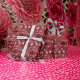 Cada personagem e tema de Natal dos velhos tempos de colheita está neste papel de embrulho de presente baseado em William Morris