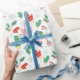 Papel embrulhante com luvas coloridas de inverno, sagradas, flocos de neve e bagas. Excelente para férias de inverno, aniversários e Natal.