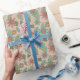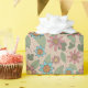 Flores cor-de-rosa e azul, brancas, florescem sobre fundo de cor kraft