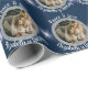 Papel De Presente Navidades Foto Round Silver y Stars Azul