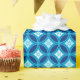 Papel de embrulho num tradicional Shippo japonês, ou "sete tesouros", com um padrão de entrelaçamento de círculos com uma flor central - flores em branco e azul pálido com um índigo escuro e fundo azul cerulano com padrão de padrão azul