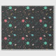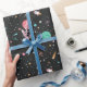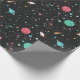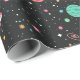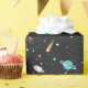 Planetas astronômicos, cometas e estrelas a preto com foguetes.
