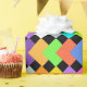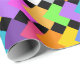 Este papel de embrulho tem um design geométrico de diamantes de neon que se sobrepõem num campo de preto.